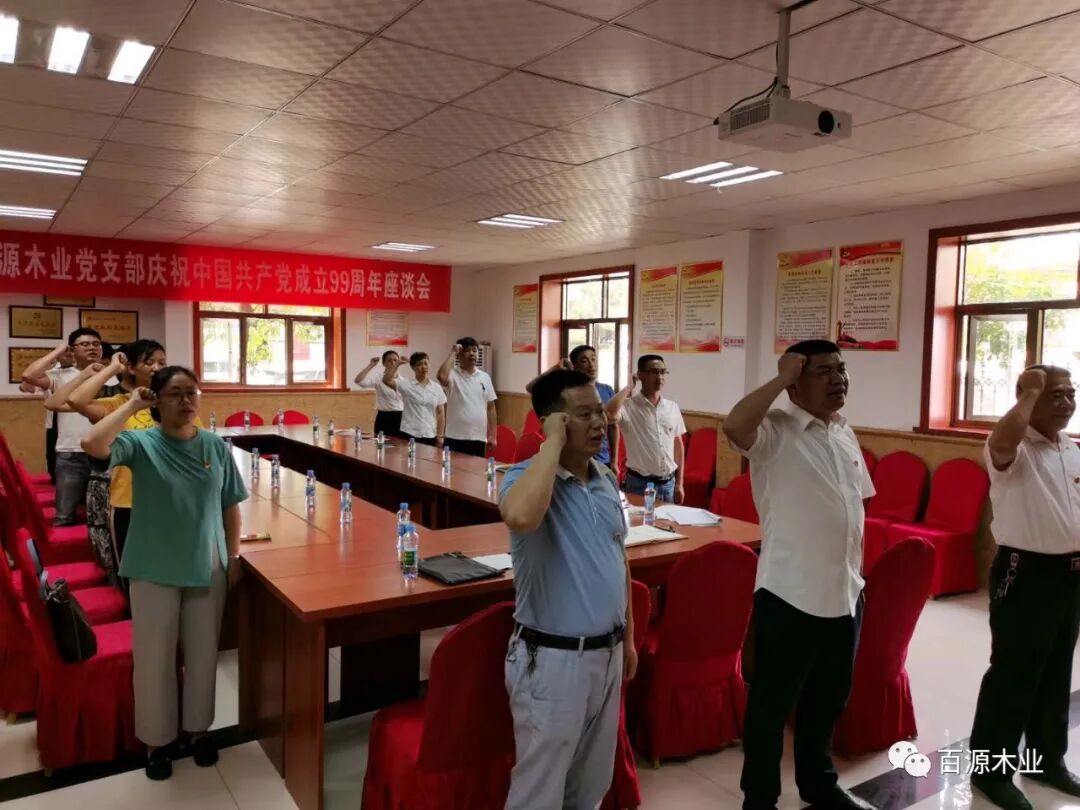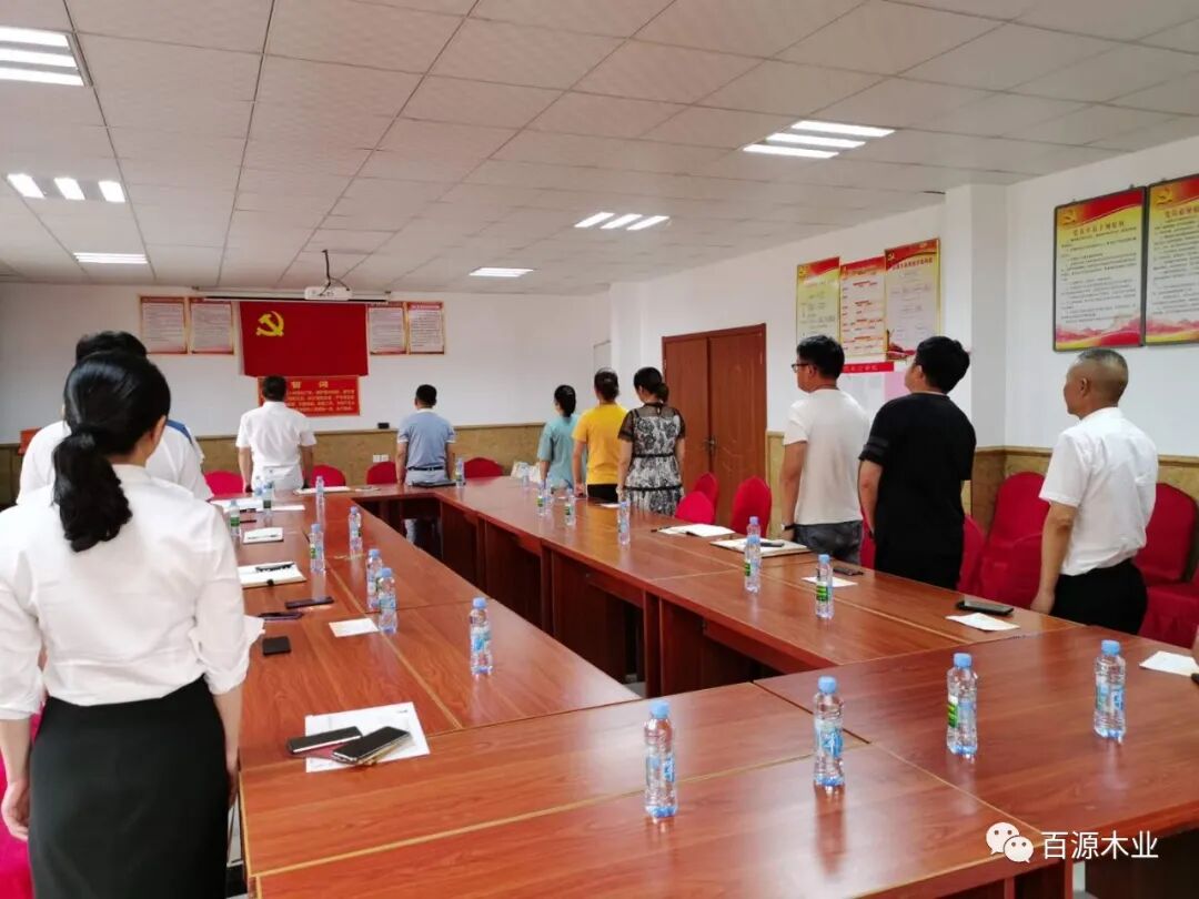 6月30日,江西百源木业党支部隆重集合,共同庆祝中国共产党成立99周年,会议在庄严的国歌中拉开序幕。支部书记带领全体党员重温入党誓词,聆听驻(企)第一书记讲述一堂深刻而生动的党课,回忆党的奋斗历程与光辉历史,表达对党的无限忠诚与热爱之情,始终铭记自己入党的初衷,始终不忘初心,牢记使命,以习近平新时代中国特色社会主义思想为指引,不断增强“四个意识”,坚定“四个自信”做到“两个维护”,汇聚公司建设一流企业的强盛力量,将党建工作与企业健康发展紧密相结合,充分发挥党员先锋模范作用,永葆共产党员本色。