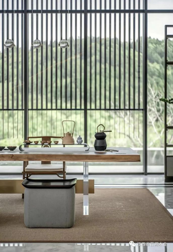 茶室选材尽可能的以自然材料为主,如竹、木、石等,环保质朴又能带来大自然的气息,这些天然材料不会因为时间而过时,而是“越旧越有味道”。