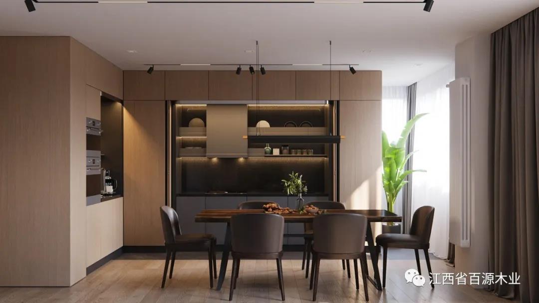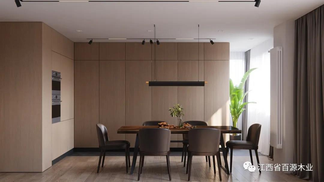 相比较黑色和白色,原木色更加柔和,用在餐厅不仅美观,还能提升用餐食欲。