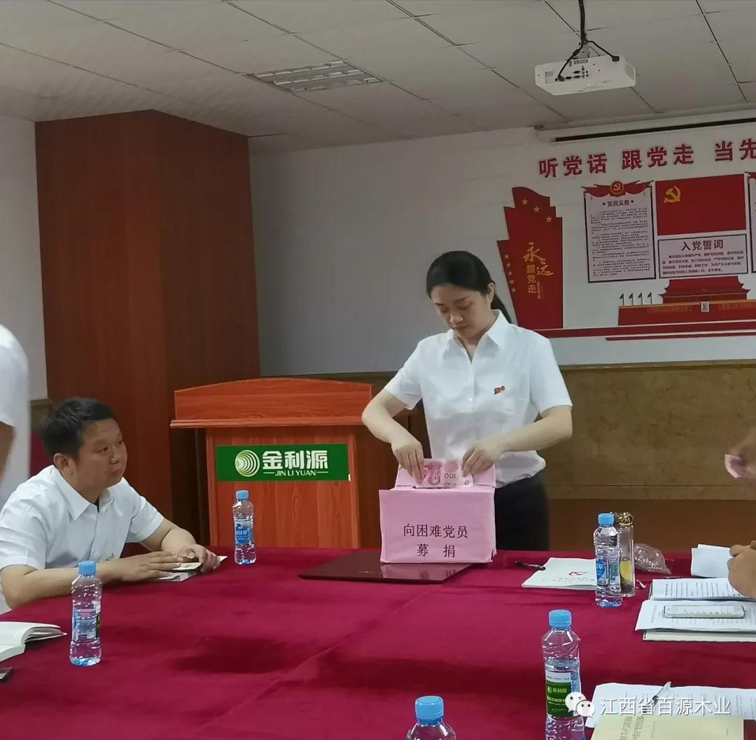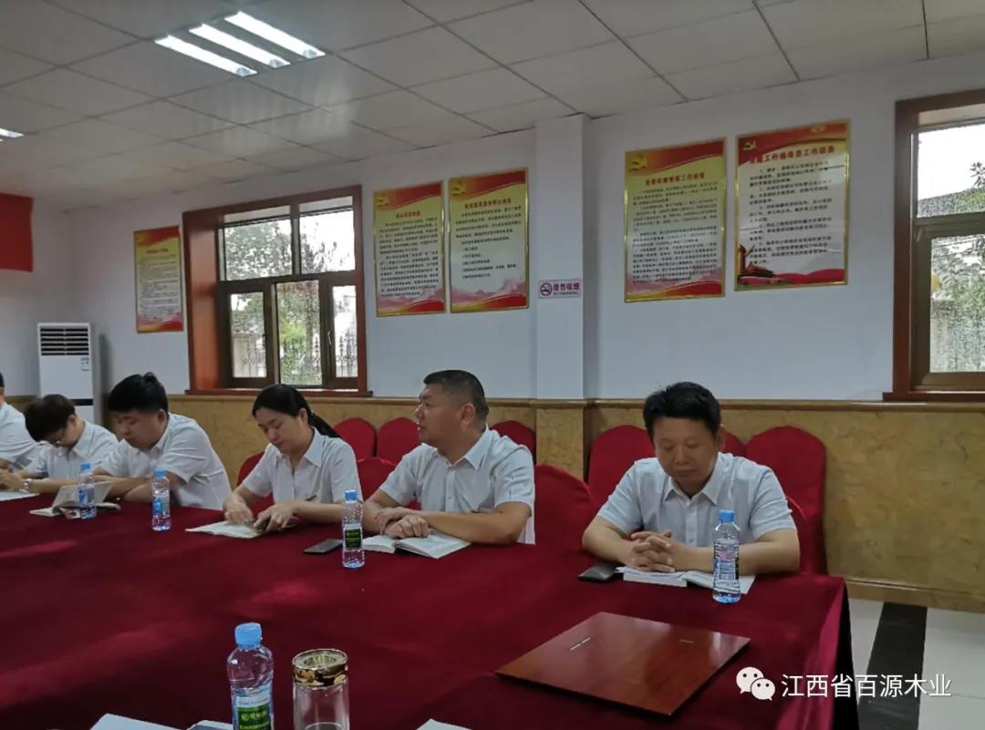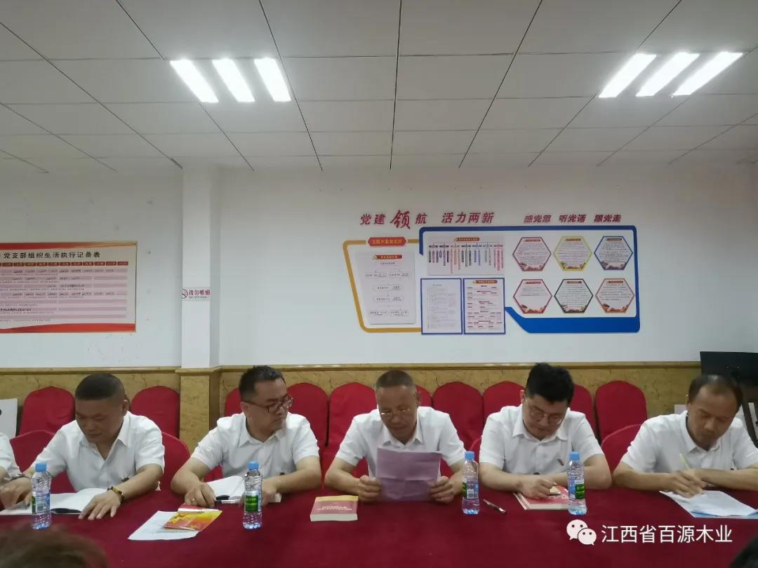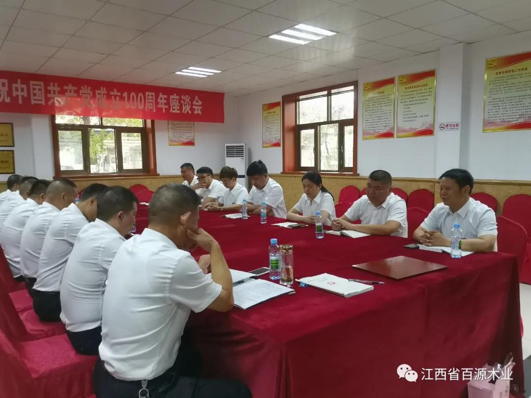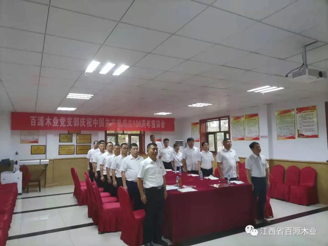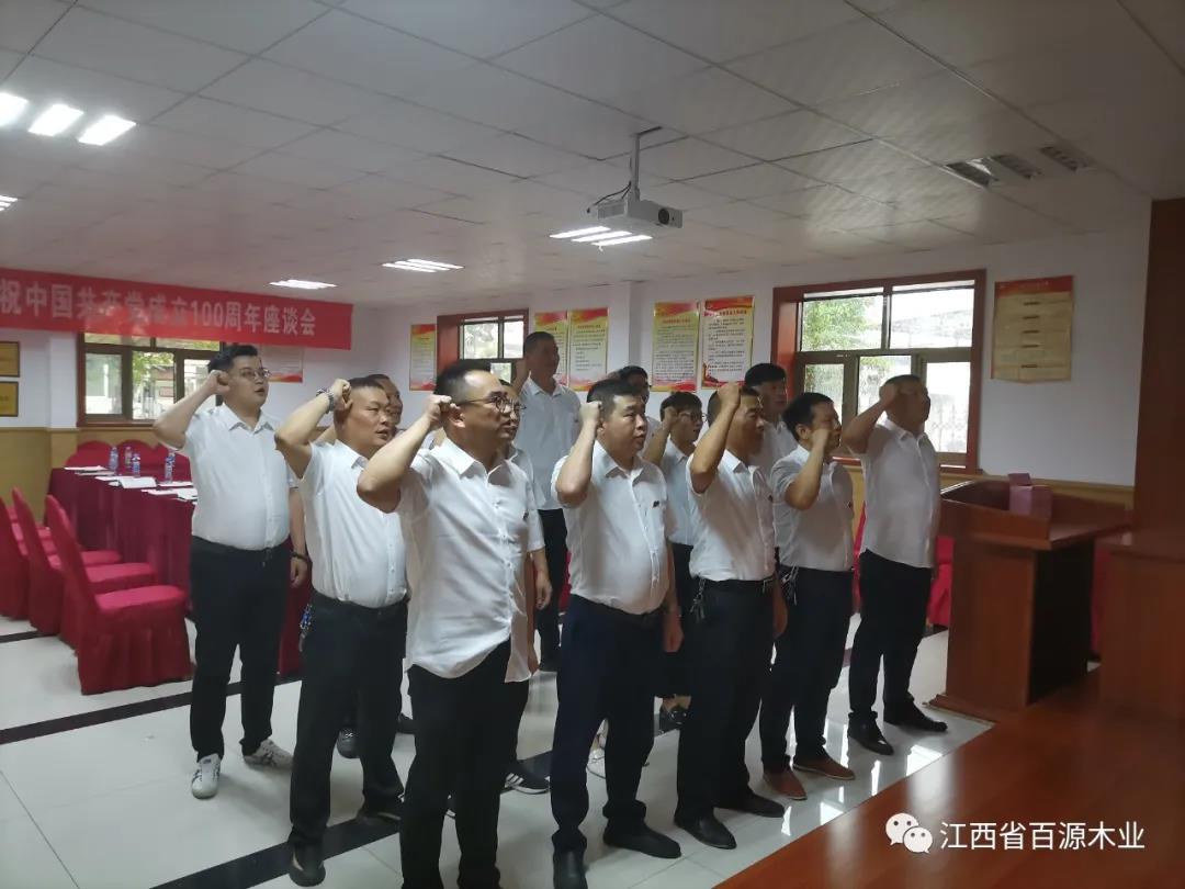 2021年7月1日,中共江西省百源木业有限公司党支部全体党员欢聚一堂,开展以“知党史、感党恩、跟党走”为主题的活动,坚定理想信念。