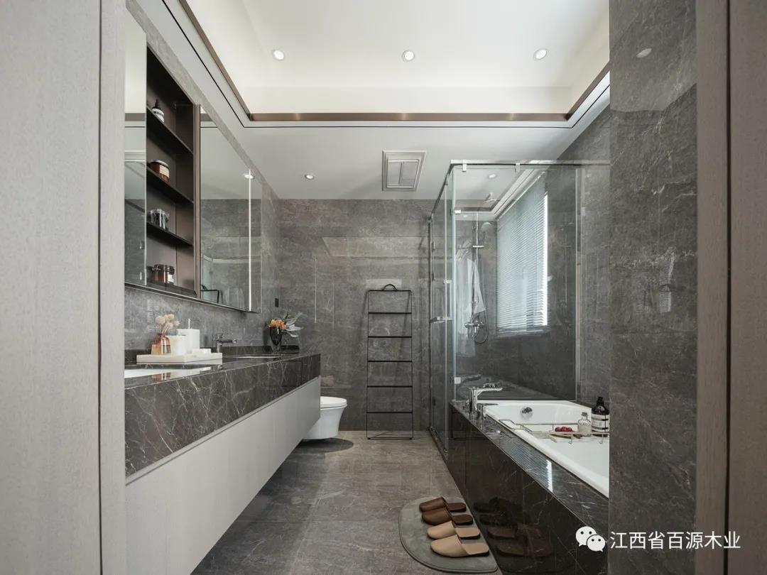 主卧独立的卫浴空间,是男女主人日常使用的洗漱场所。在大大的浴缸里做一次盐奶SPA,让疲惫一扫而空。