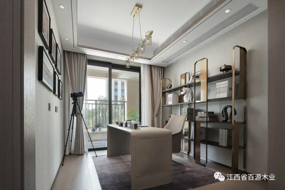 书房所采用的摄影主题,不仅凸显着着男主人的业余兴趣,也是他在个人小宇宙中沉淀思绪的专属地段。