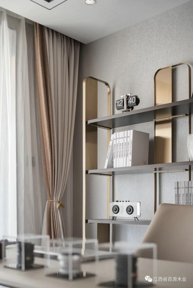 地下层作为居所实用性的扩充之地,是男主人聚会、与朋友相约的绝佳场所。接待区选用得体的灰色调,与凝练的铜金色相融合。呈现出广阔奢华的空间视效。彰显着居住者的审美高度。