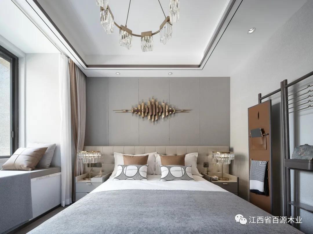 老人房以灰色调为主线,在金色与咖啡色的映衬中,突显出沉稳而不凡的格调感。简约不简单的精致品格,打造一个轻恬舒适的安居之所。