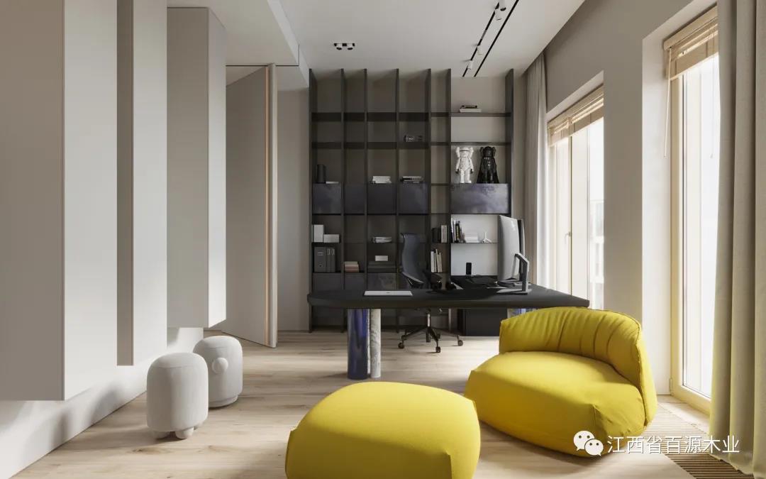 除了风格以外,书房颜色的搭配也很重要,毕竟颜色对人心情的影响可不小。虽说书房的风格最好与整体装修风格相似,但考虑到书房的功能性,建议尽量选择柔和的色彩,避免大面积使用过于饱和明艳的颜色。
