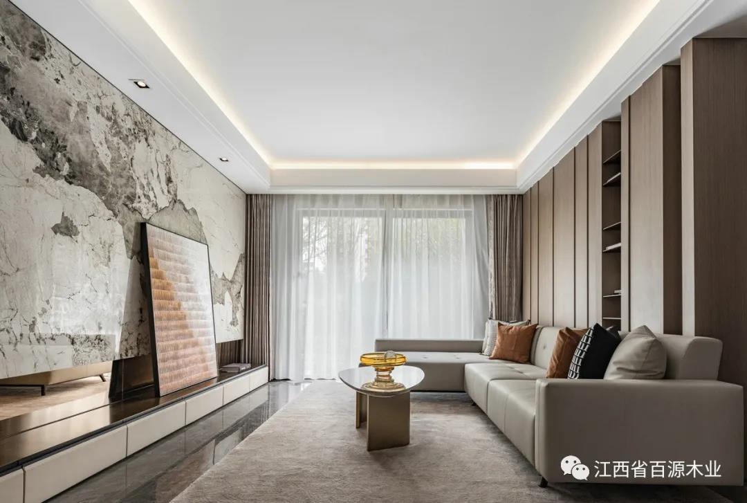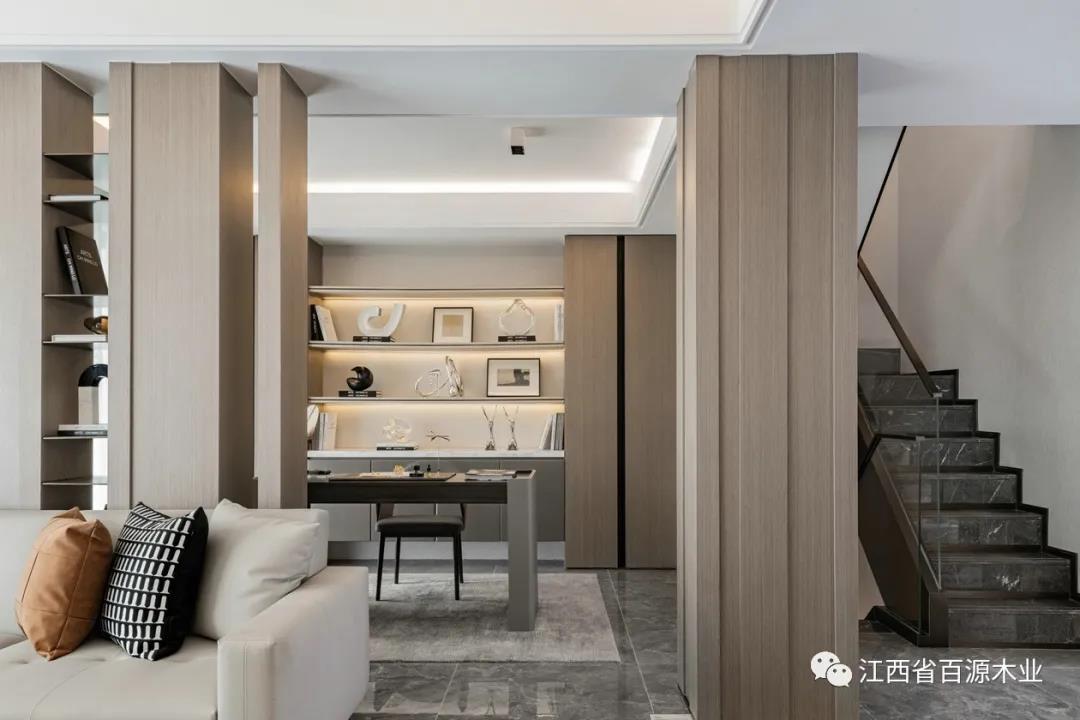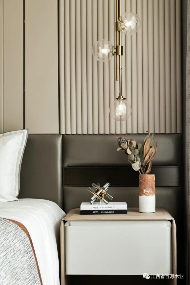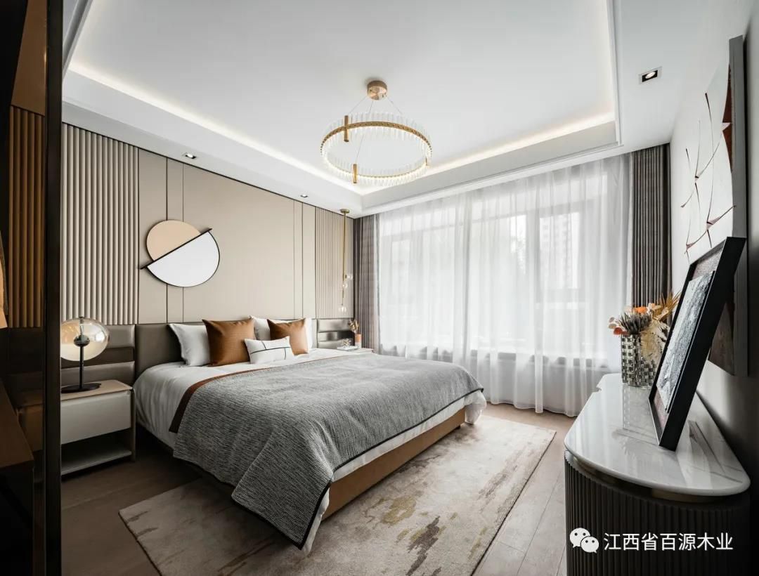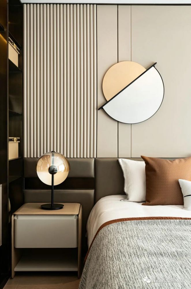 木饰面的加入让房间更加温暖,营造一个沉稳、宁静的氛围。