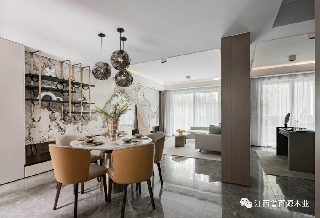 开放式客餐厅用以家庭或朋友聚会,不仅让整个户型看起来更通透,更能很好的处理空间与人的关系,强调情感的连接。归于自然,安静的享受似水流年,无声且绚烂。