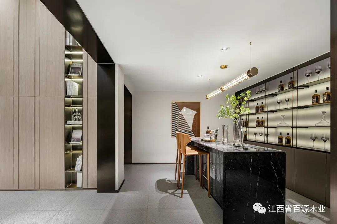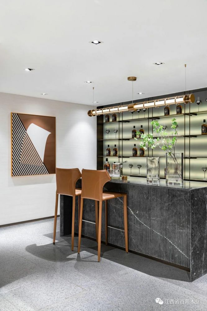 在暖色调的灯光映衬下,新奇但不突兀的创意使人既感到舒适又能捕捉到高端生活罅隙间渗露出的简约轻奢气息。