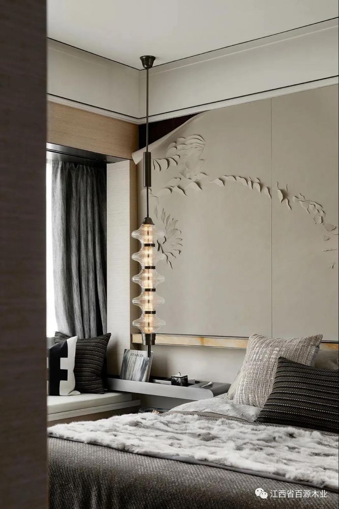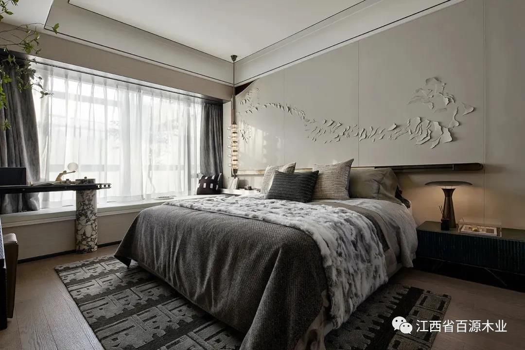 三毛曾在散文中说:“总有一日,我要在一个充满阳光的早晨醒来,静静的听窗外如洗的鸟声,那是多么安适的一种苏醒。”理想生活,大致如此。主卧的设计延用了室内的整体格调,简单随意,又不失优雅精致。