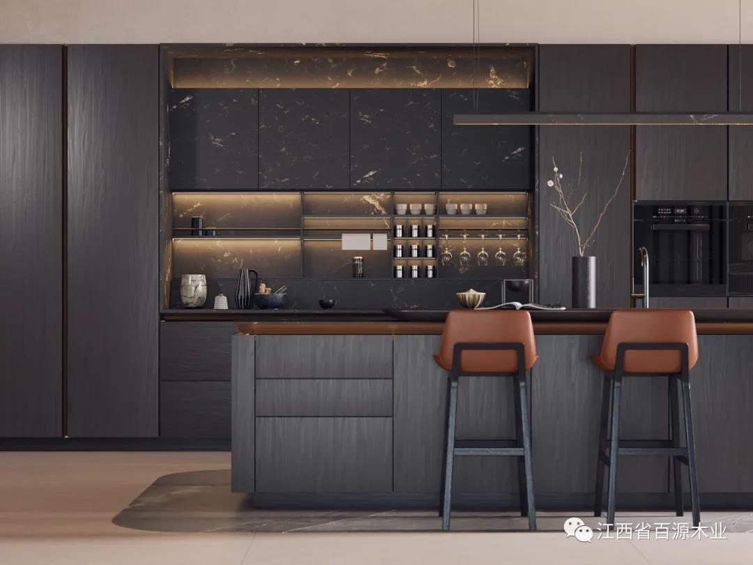 另外吊柜下灯光能够为厨房提供功能照明,在使用时,可以将光源更加聚焦。