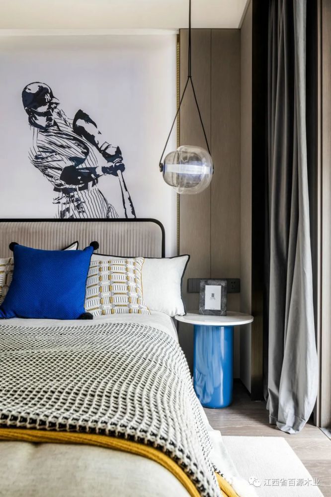 主卧清雅舒适,以浅色系为整体基调,给人以空濛雅致的氛围感以及舒适从容的归属感。
