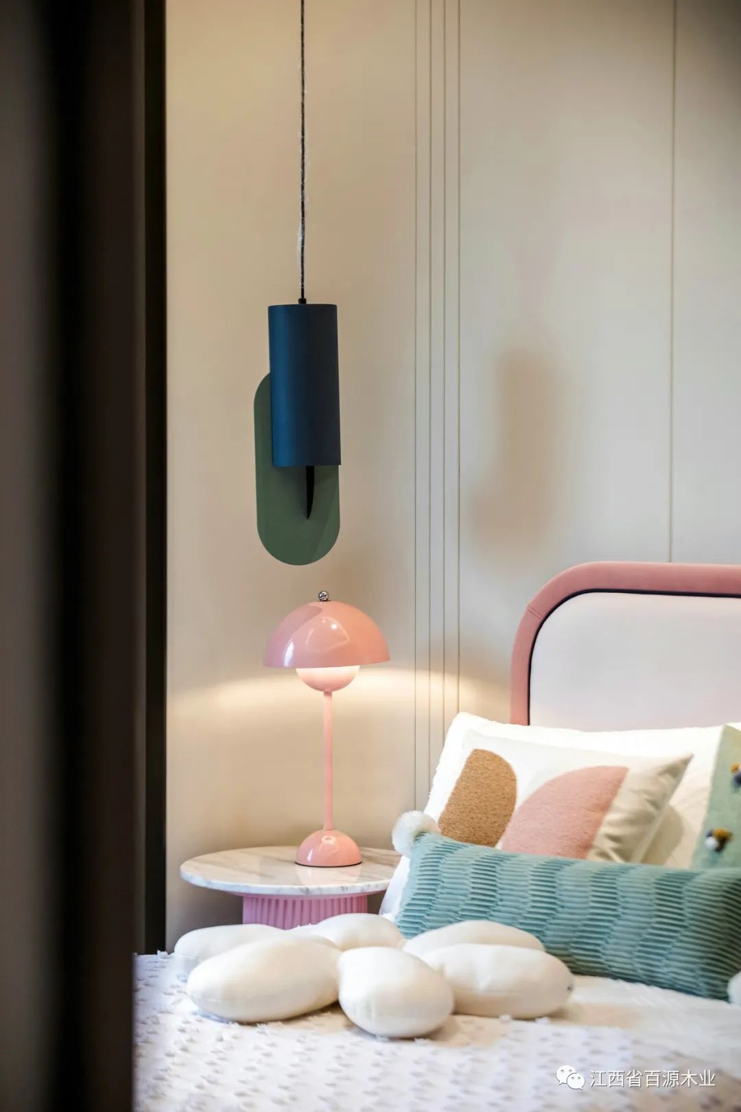儿童房以简单纯粹的粉色作为主色,象征孩子澄澈的世界。床背的边角做了圆滑处理,床上用品皆采用丝缎般轻柔的面料,给孩子最贴心的呵护,在不经意间将温柔缓缓凝聚。