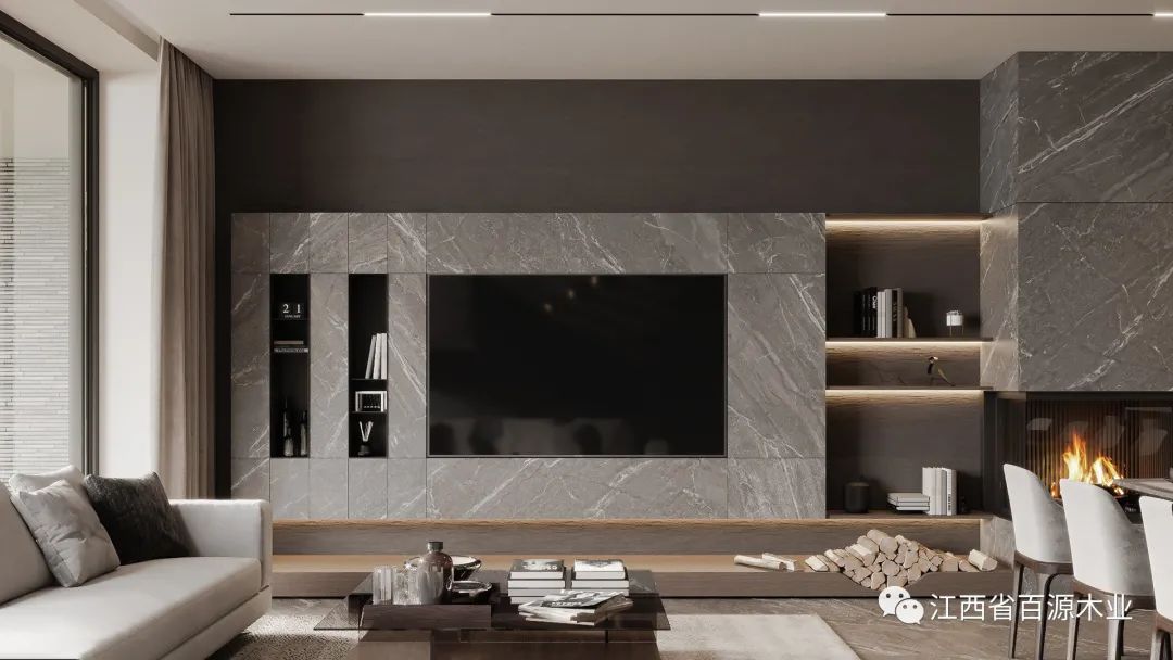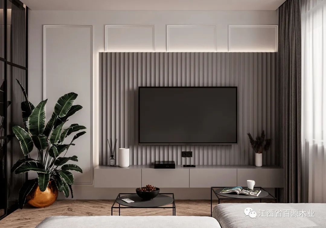 在定制电视柜时,需要根据想要展示的物品定制尺寸,合适的高度会让电视柜整体来看起来更协调。