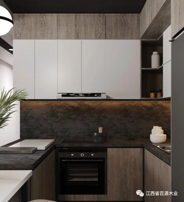 侧门开的好不好,严重影响体验。根据人体功能学原理,一般操作区左上位置的墙柜设计为向左双开门,且内部是相通的,方便收纳尺寸超过单扇门的较大物品;操作区右上位置的墙柜设计为向右单开门,这样拉门比较顺手。