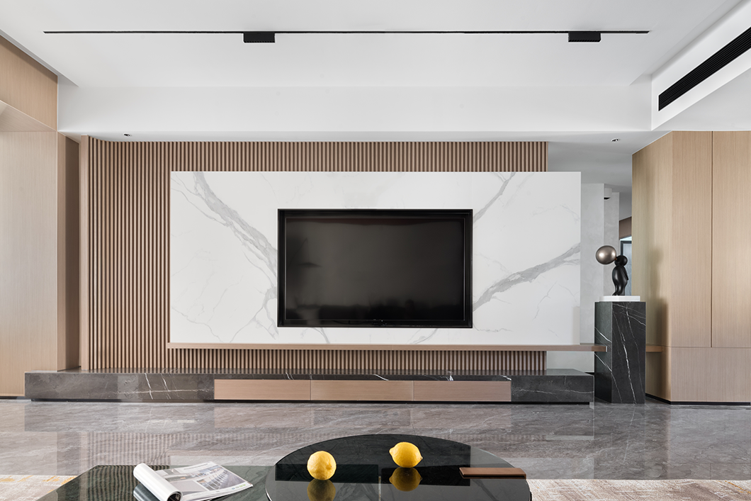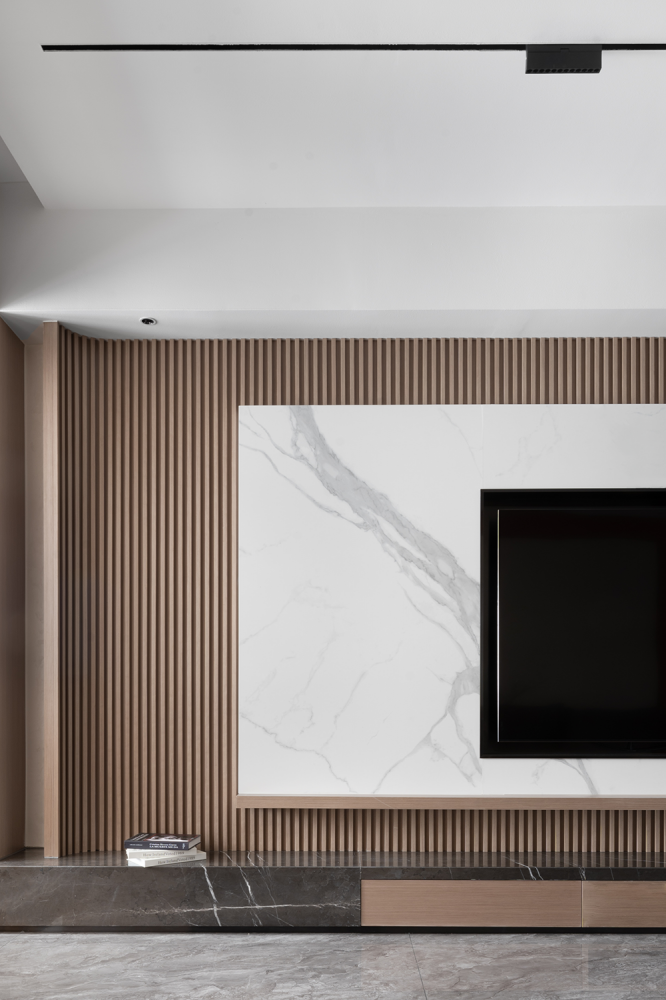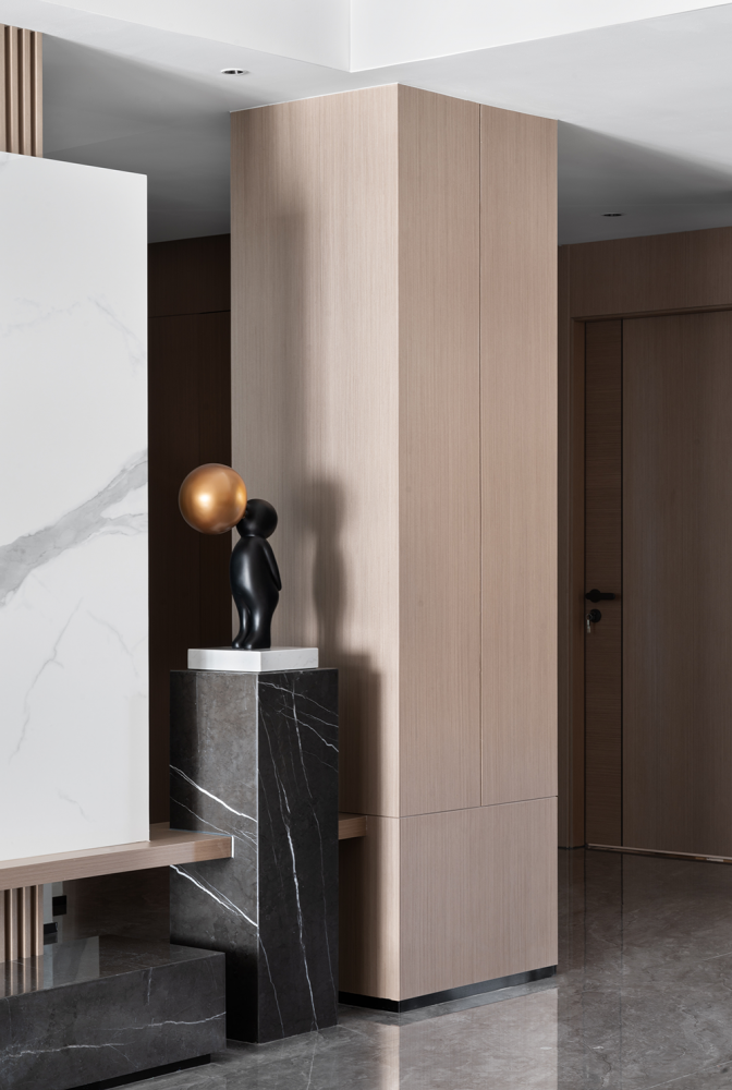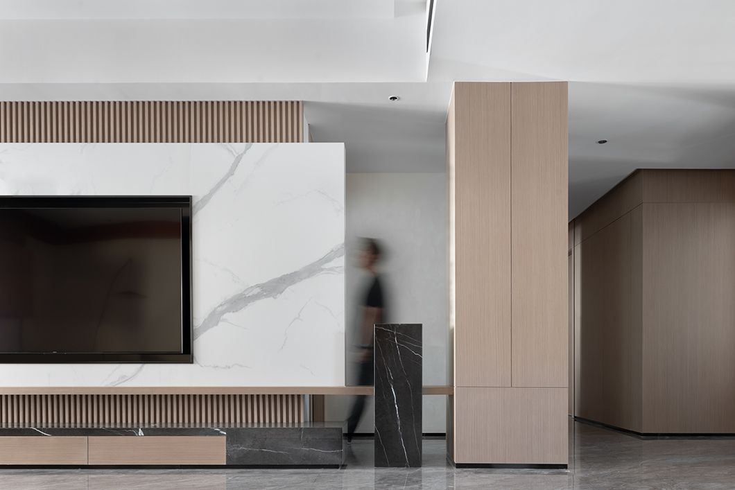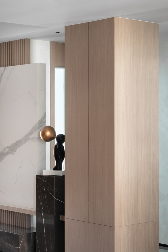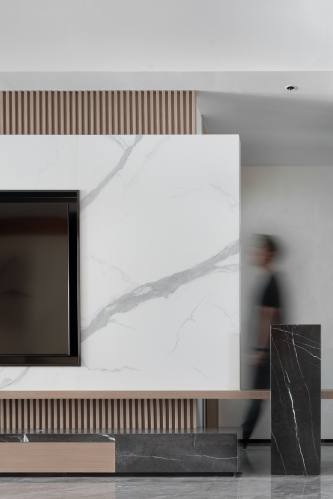 粗犷的黑白大理石的与温润栅格木板的有机组合,以材质的碰撞出“美”的样性。整个空间自然简单,有趣纯粹。