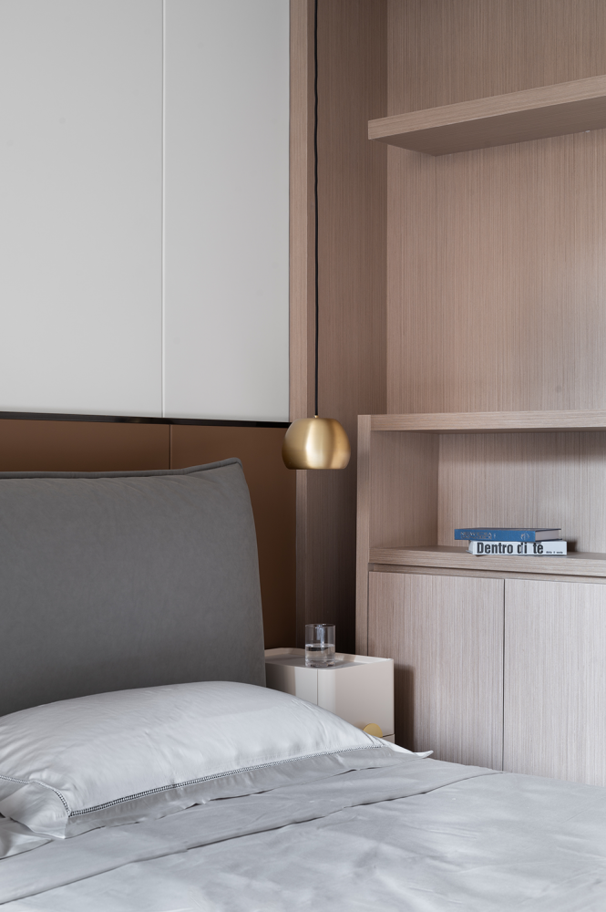 城市的纷杂喧嚣,在进入卧室的那一刻戛然而止。在无限静谧的蓝白空间内,理性与感性交织的艺术性表达,解锁了家居的无限美感。