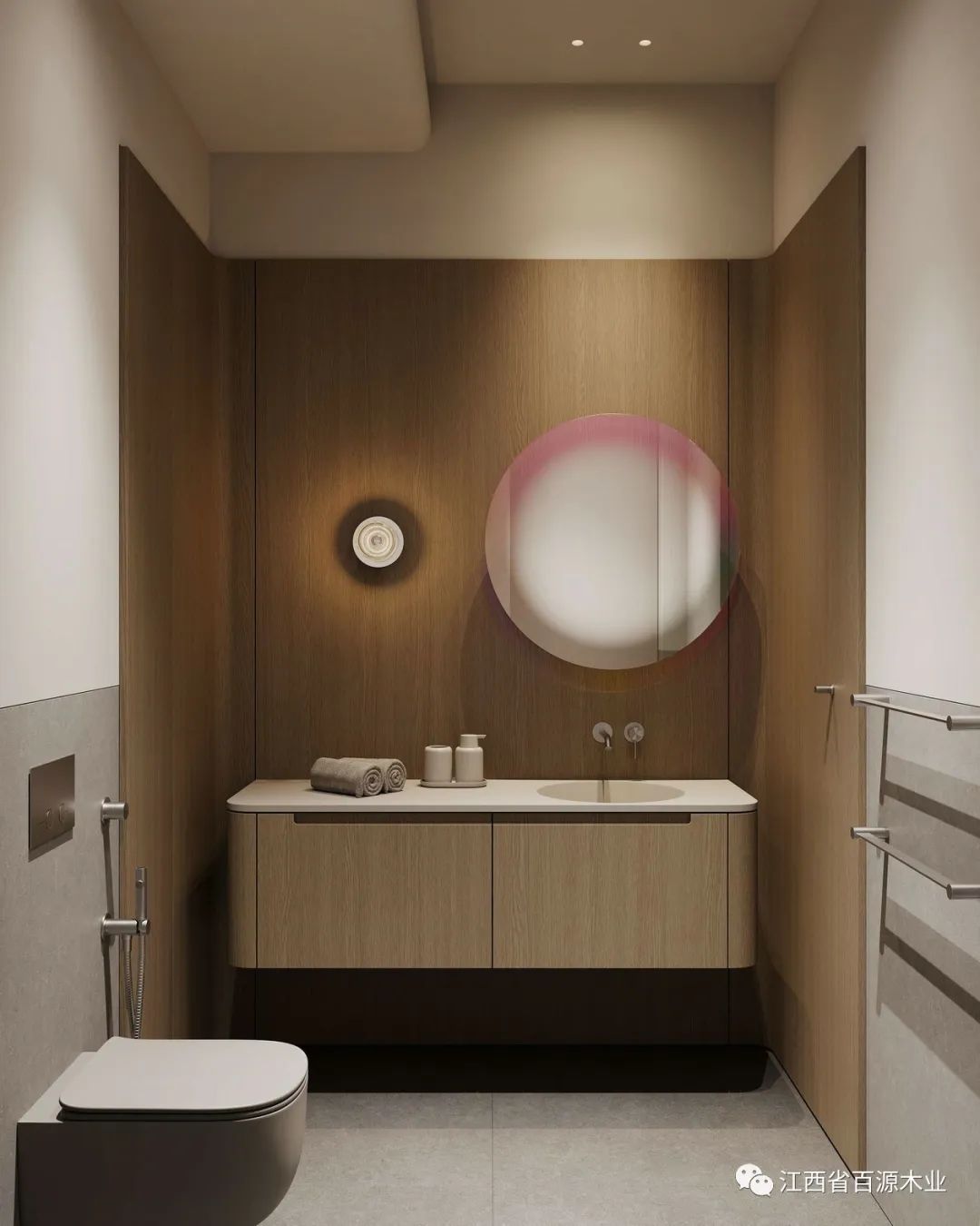 针对卫生间采光不足的问题,其实也有很多的小妙招。比如:除了顶面的主灯之外,你也可以加入其它的辅助灯光。还可以增加美观度。