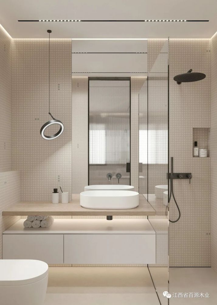 再者,利用白色等可以提亮的瓷砖,加上通透的玻璃隔断设计,都能很好地解决这一问题,从视觉上改善光线不足的缺点。