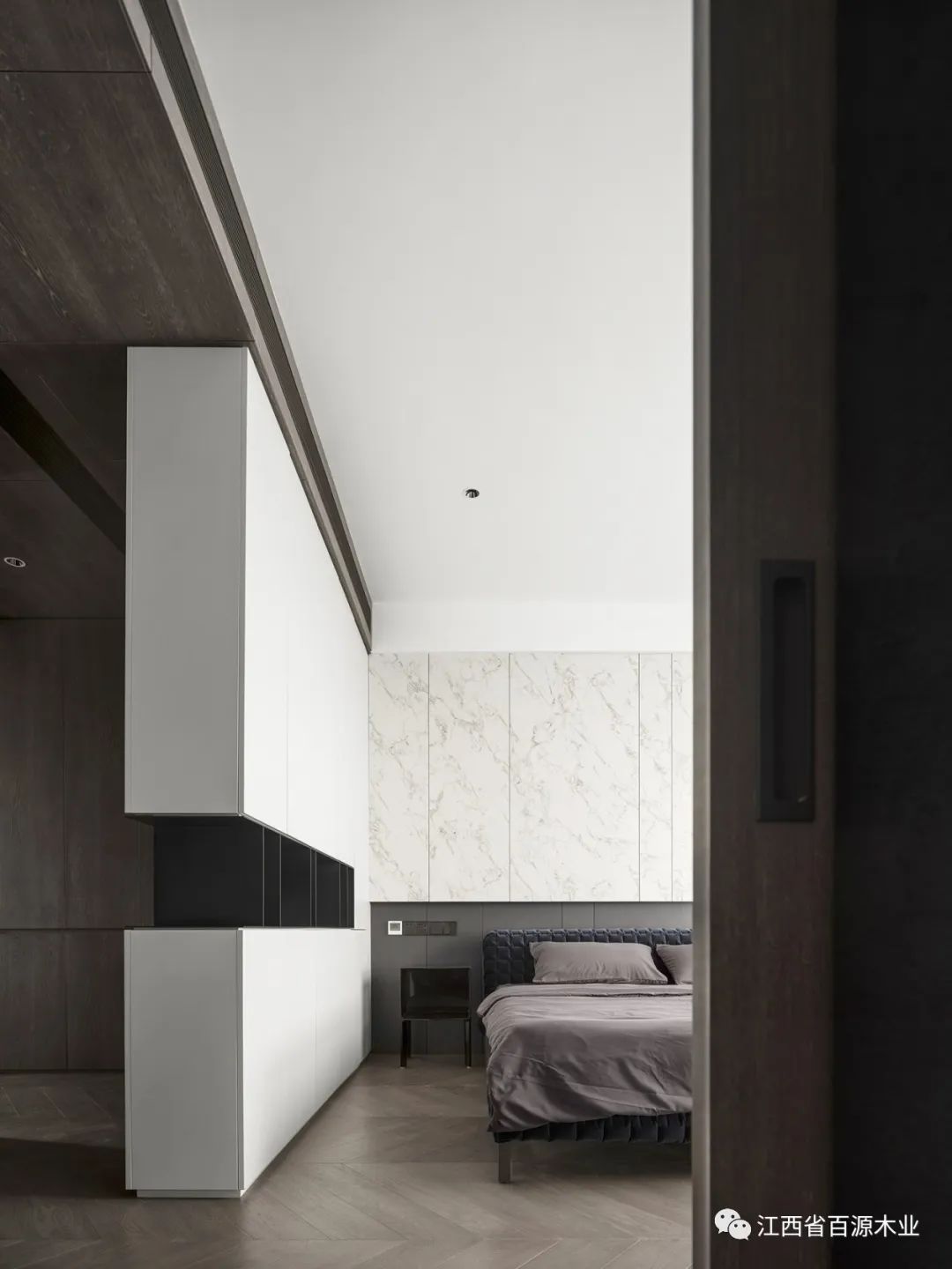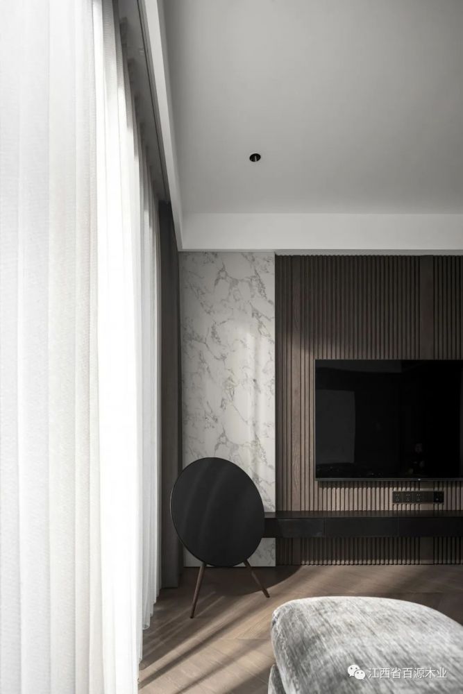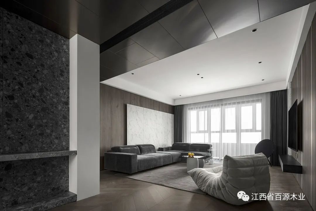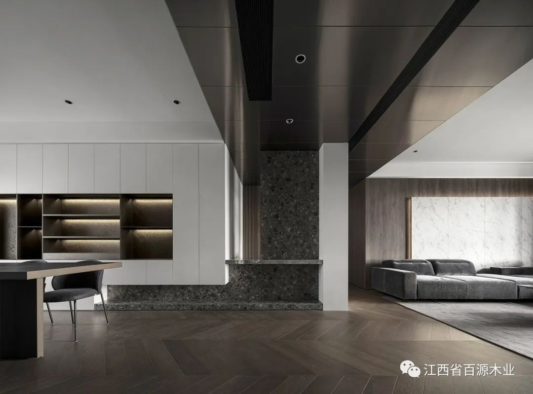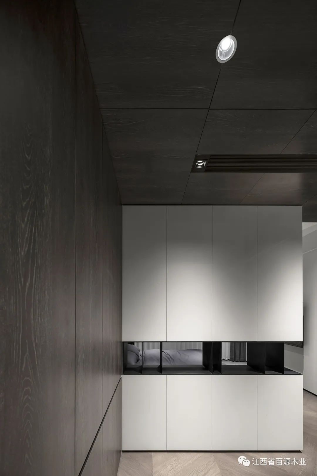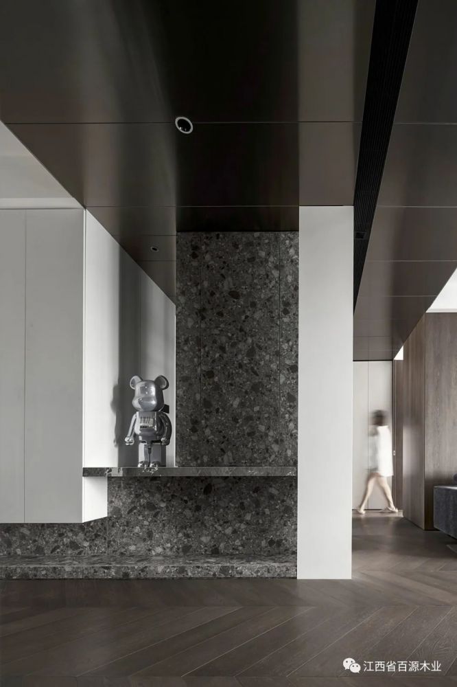 黑白拼接背景墙优雅大方,在沉默的空间中抒写肌理与质感,塑造精神领域的内涵。