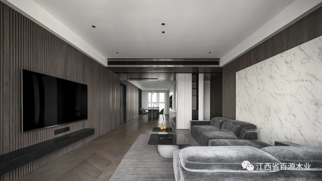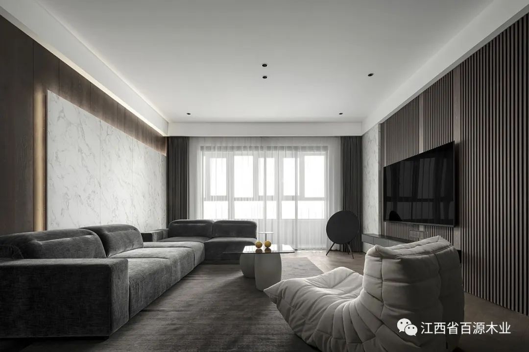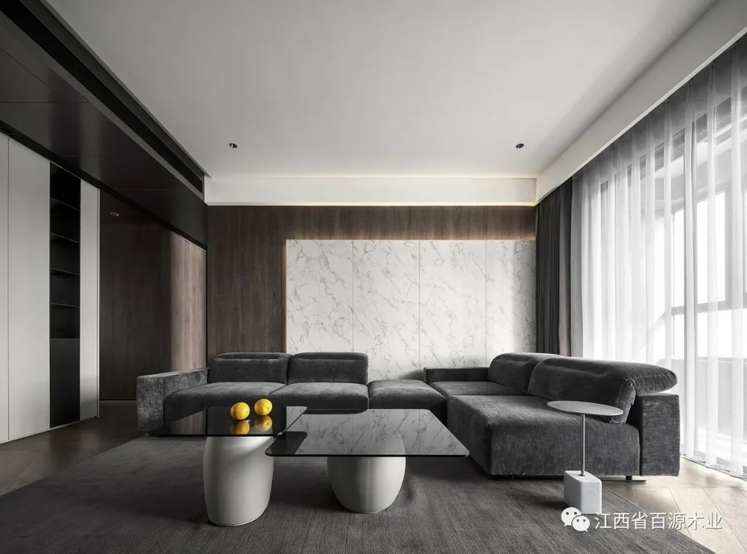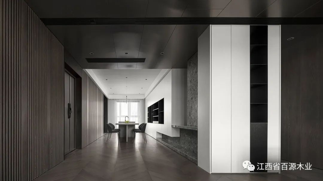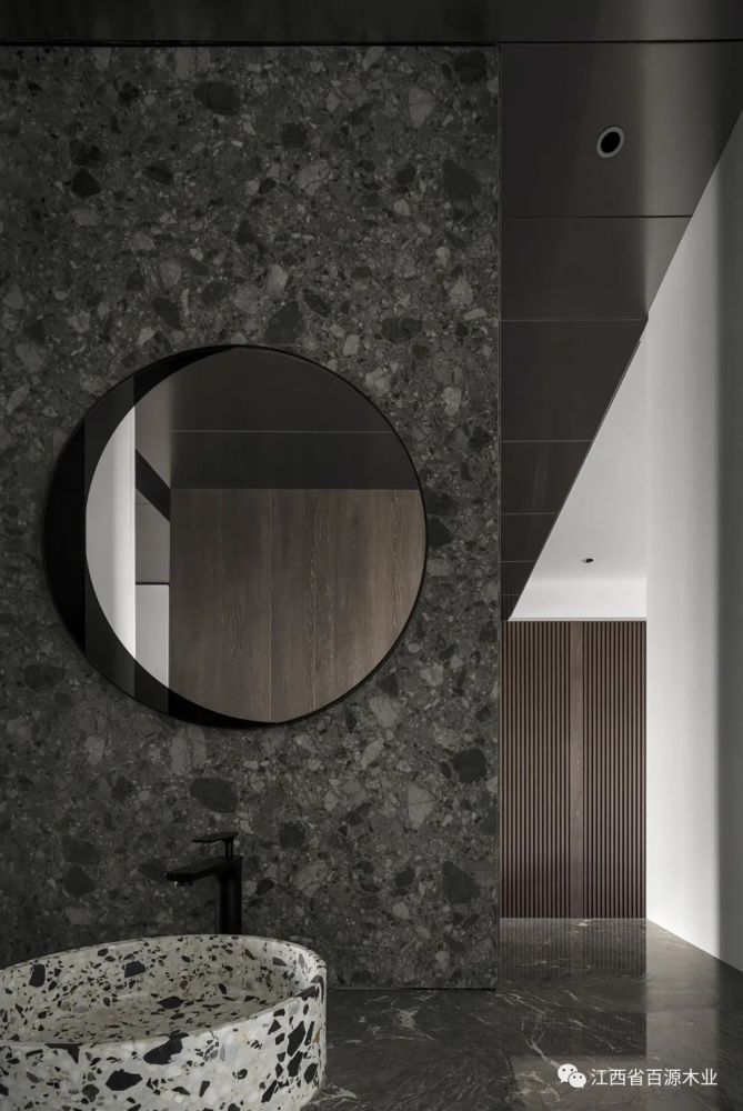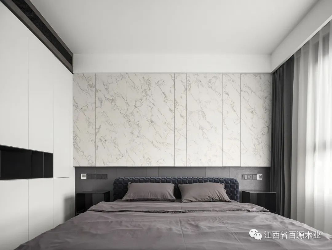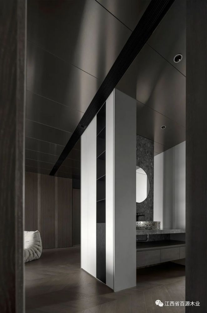黑白拼接背景墙优雅大方,在沉默的空间中抒写肌理与质感,塑造精神领域的内涵。