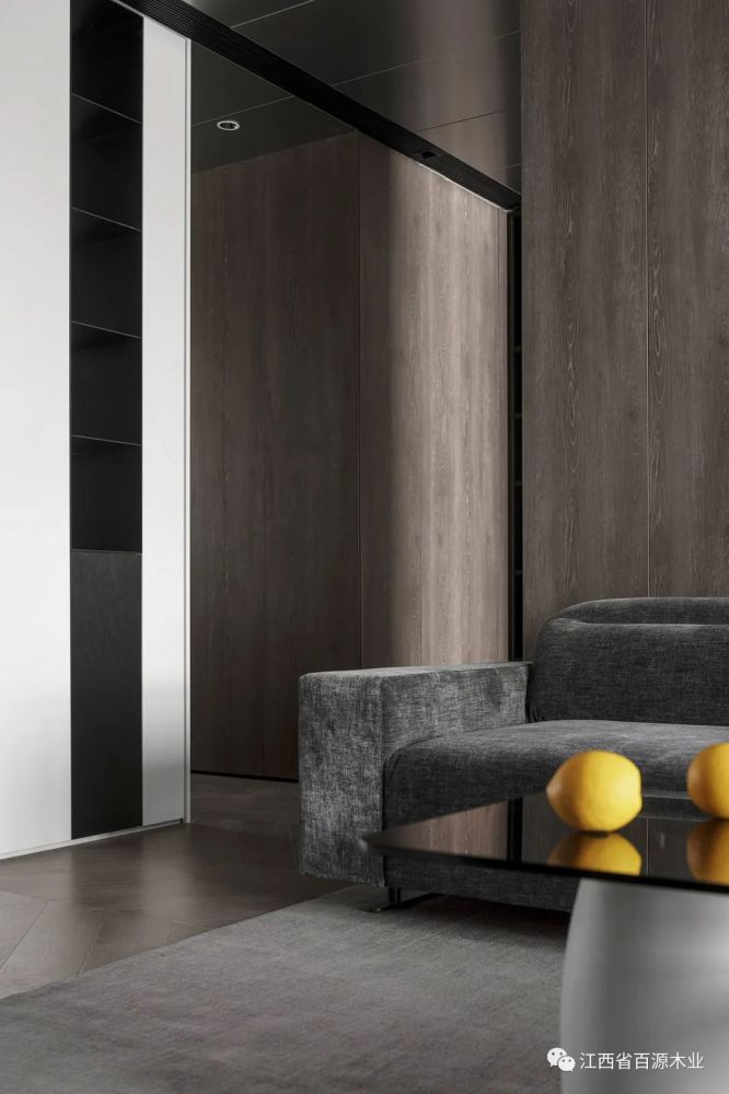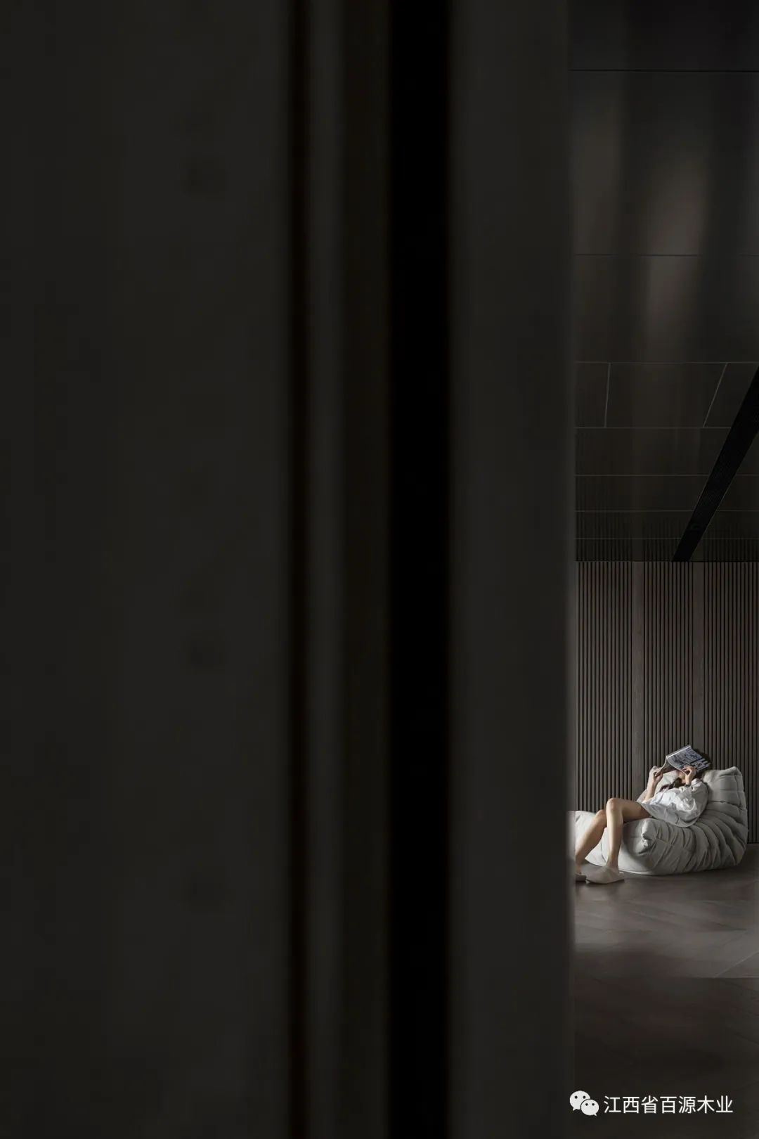 木饰面协调空间秩序,整齐的纹理营造视觉享受。闹中取静,推开隐藏门即来到了桃花源,远离喧闹,回归心灵的平和。
