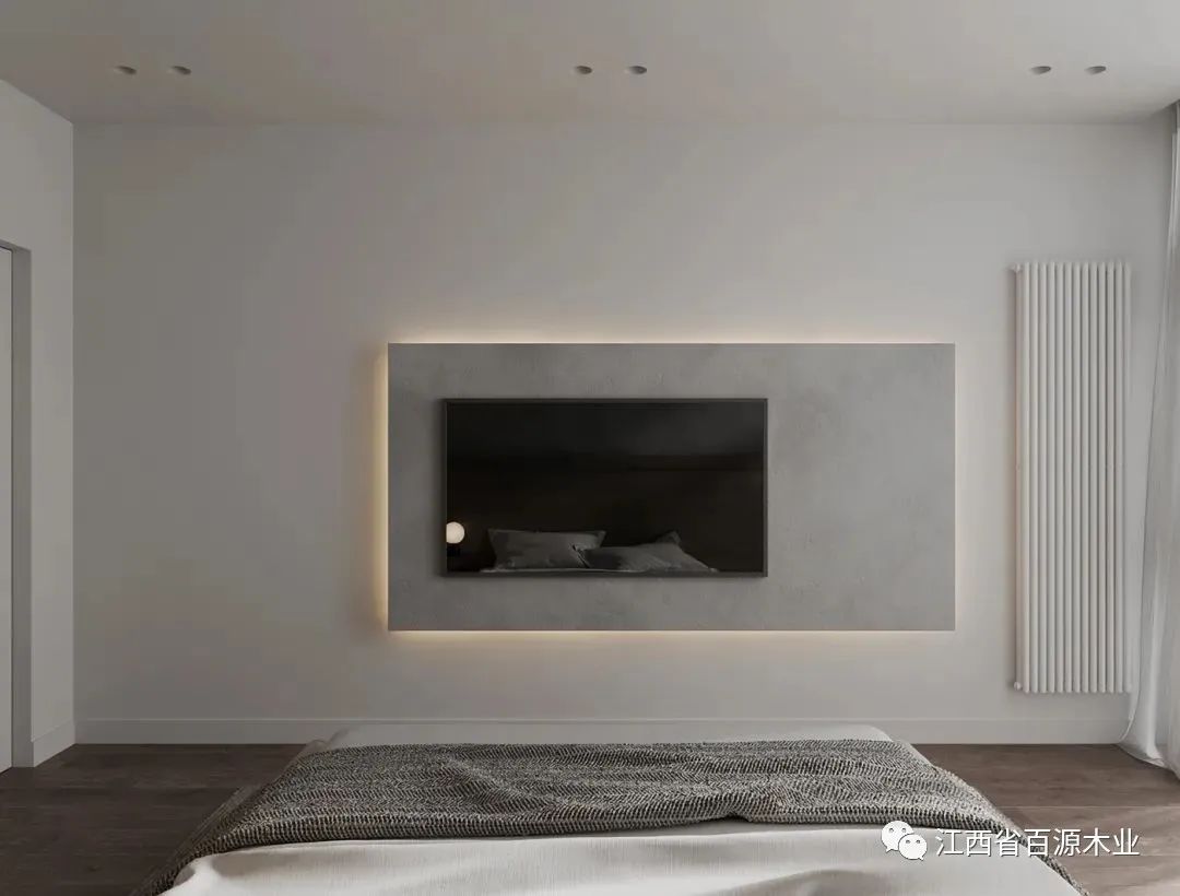 卧室电视背景墙,视觉更具表现力和设计感,在变化的光影渲染下,空间更有情调。