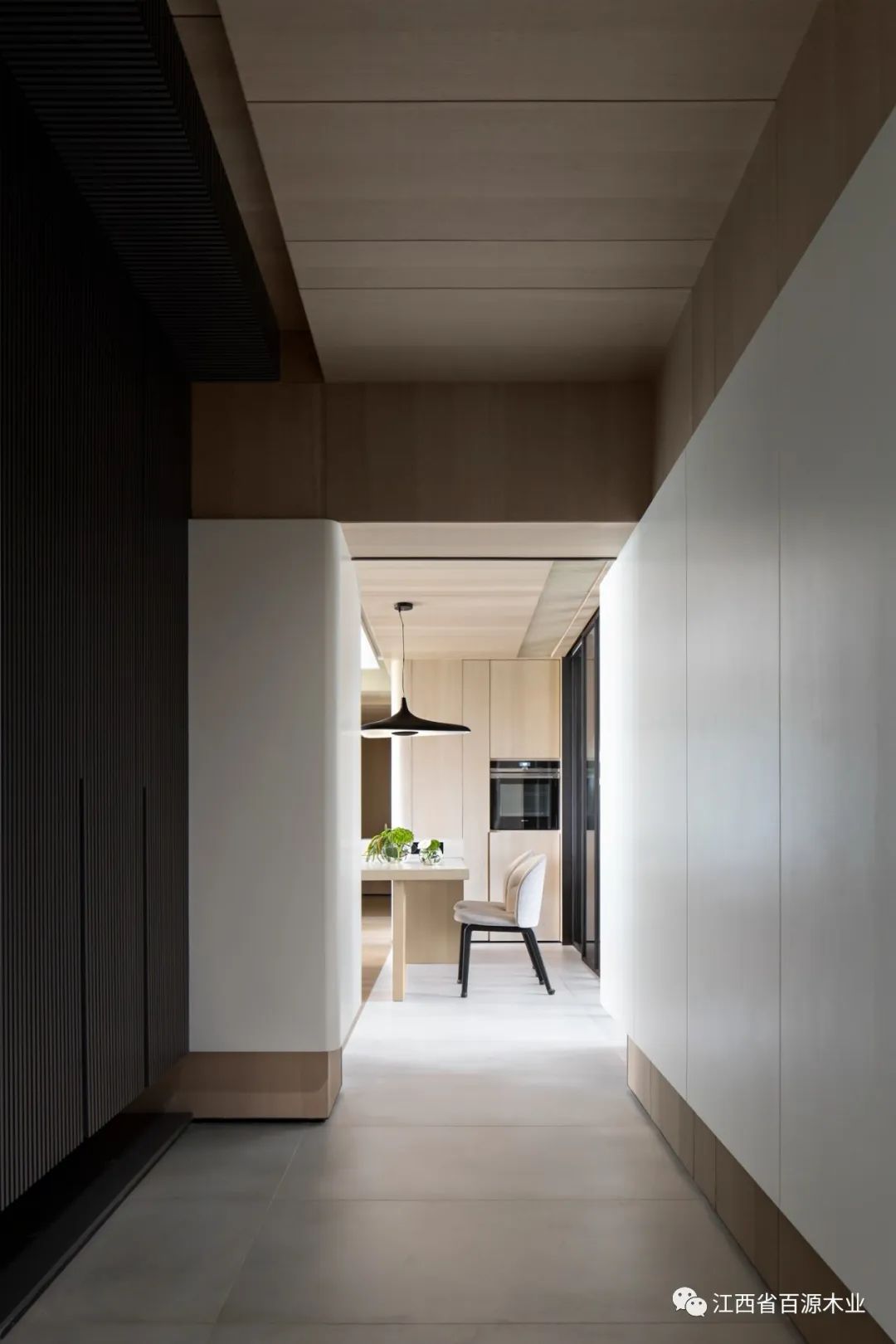 打通原有架构重新组合公共空间的关系沿天花、墙壁、地面实现一体化视觉分割巧思。