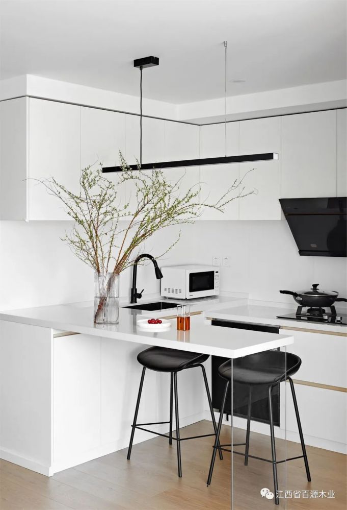 同样运用悬空的设计,避免满墙柜体造成的空间压抑感,并与入户玄关柜相呼应。