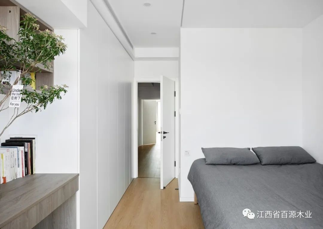 将次卧门洞进行调整,释放整面储物空间,为主卧提供额外收纳支持,并为未来可能出现的新增家庭成员预留空间。