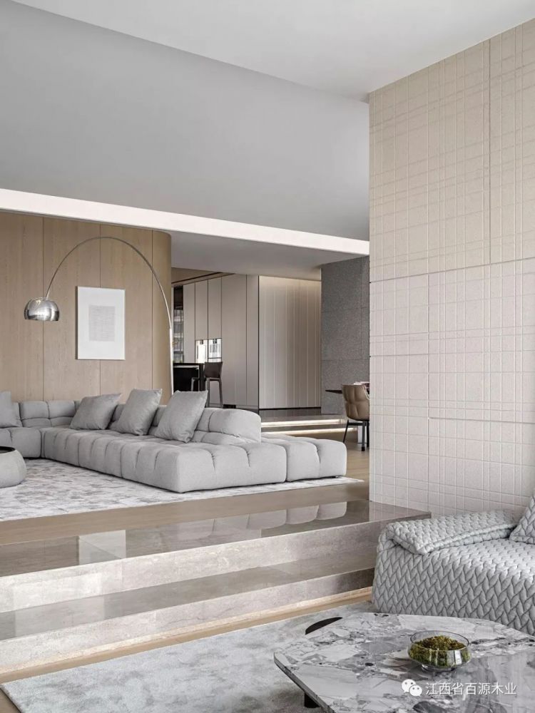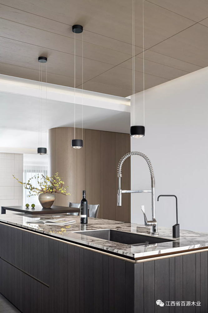 材质上则以天然的大理石和木制纹理为主,来营造自然主义空间,同时通过不同的拼接和搭配来突出质感和表现空间。