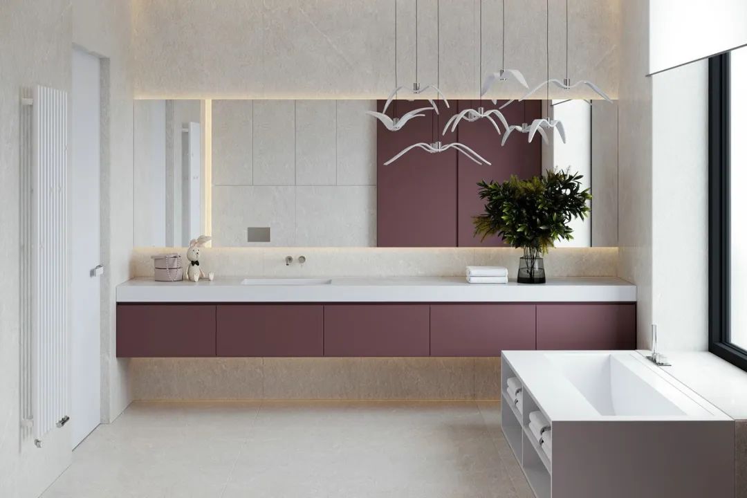 卧室、洗漱台、浴室可选用较暗的橙色,营造出温暖和谐的氛围。给人干净简单的视觉,搭配黑白灰百搭色彩,呈现出高级品质感。